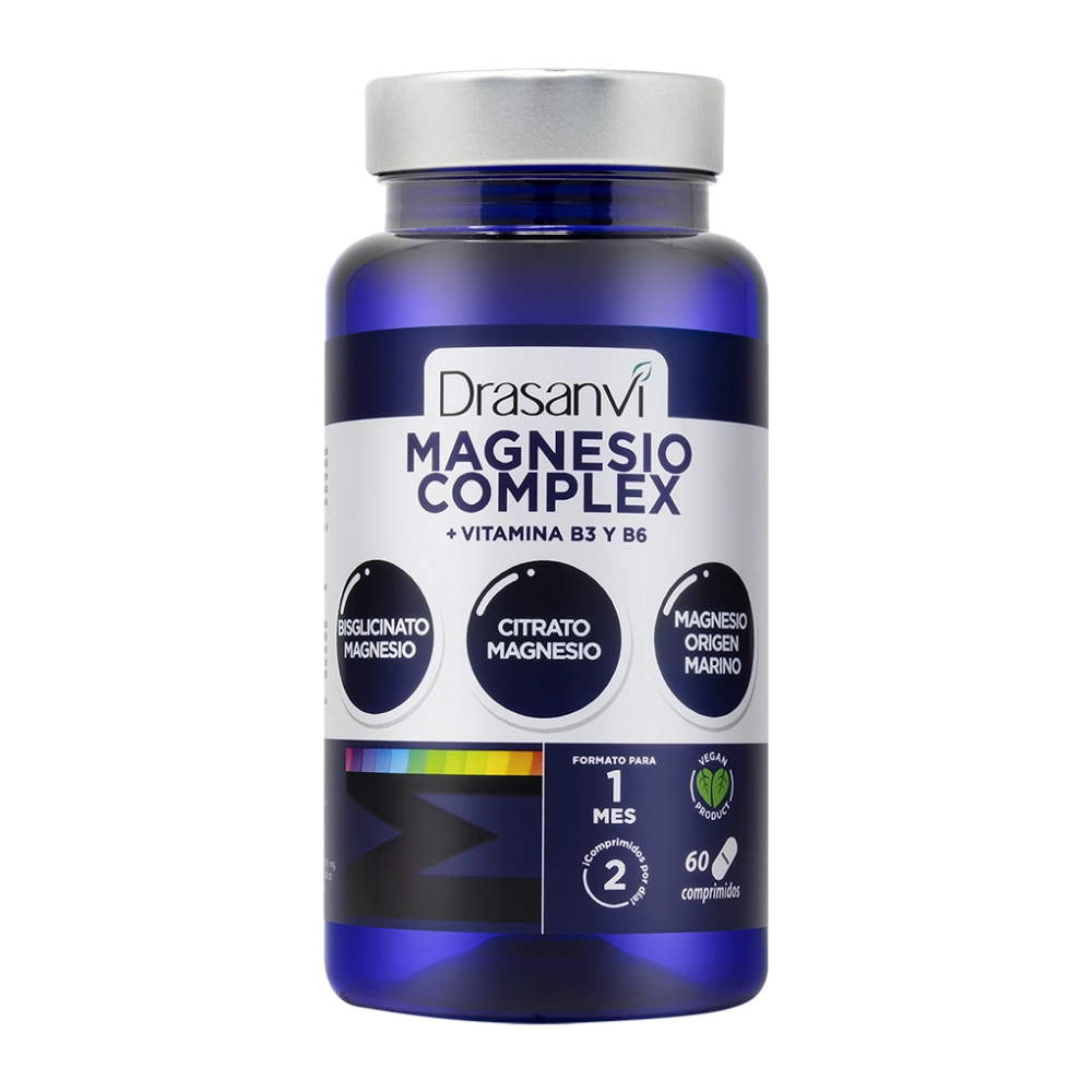 Drasanvi Magnesio Complex es un suplemento mineral avanzado formulado con tres fuentes complementarias de magnesio —bisglicinato, citrato y magnesio marino— que aportan una absorción superior y una tolerancia digestiva óptima. Enriquecido con vitamina B3 y vitamina B6, este complejo está diseñado para apoyar el rendimiento físico, la salud neuromuscular y el metabolismo energético en usuarios activos o con deficiencia de este mineral esencial.