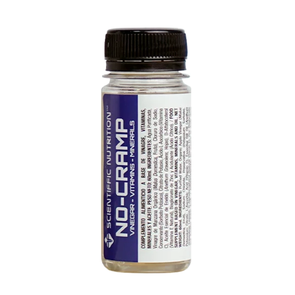 Suplemento líquido con electrolitos, vinagre de manzana y vitaminas para prevenir calambres musculares